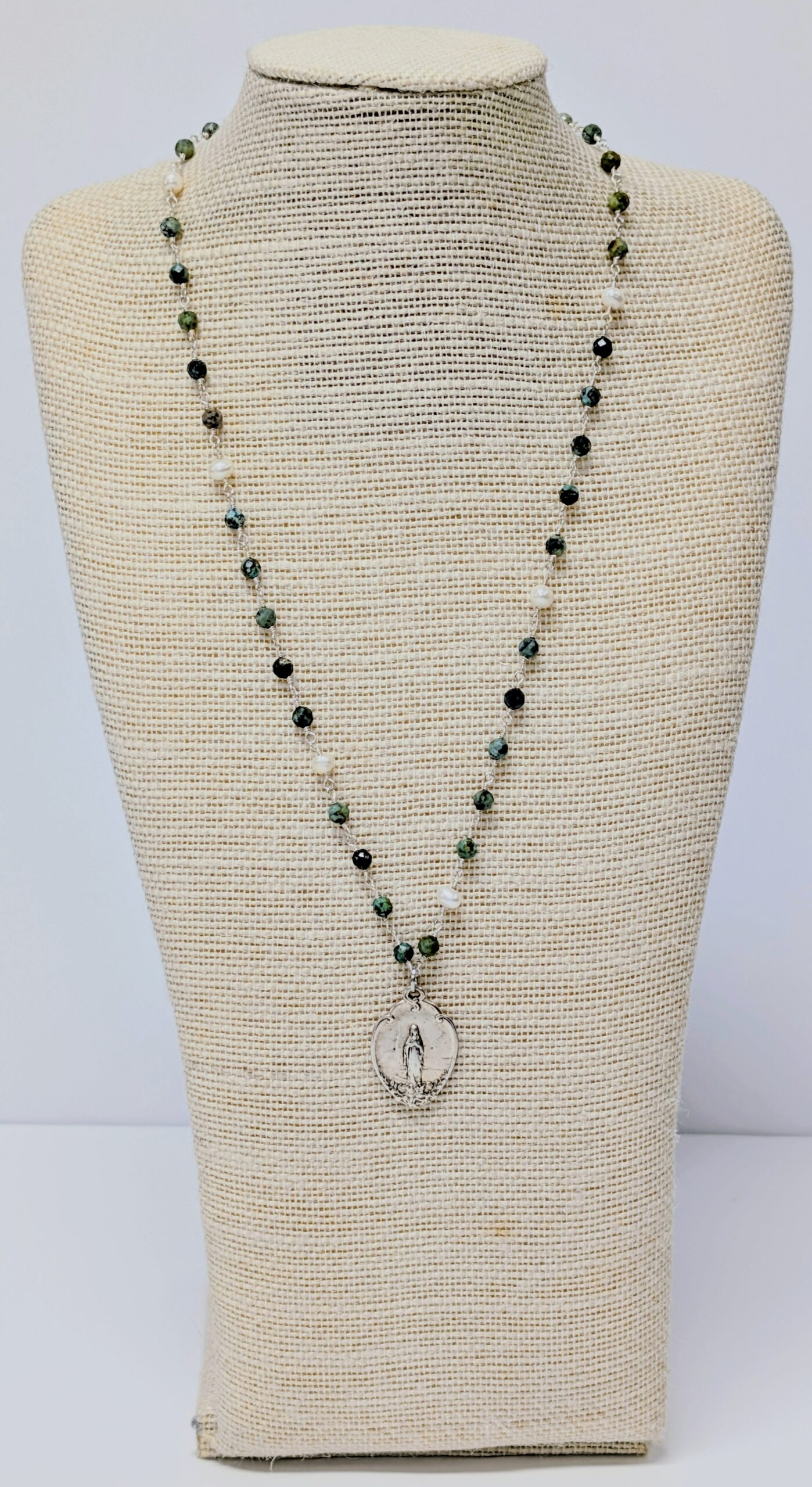 African turquoise with pearl miraculous medal
