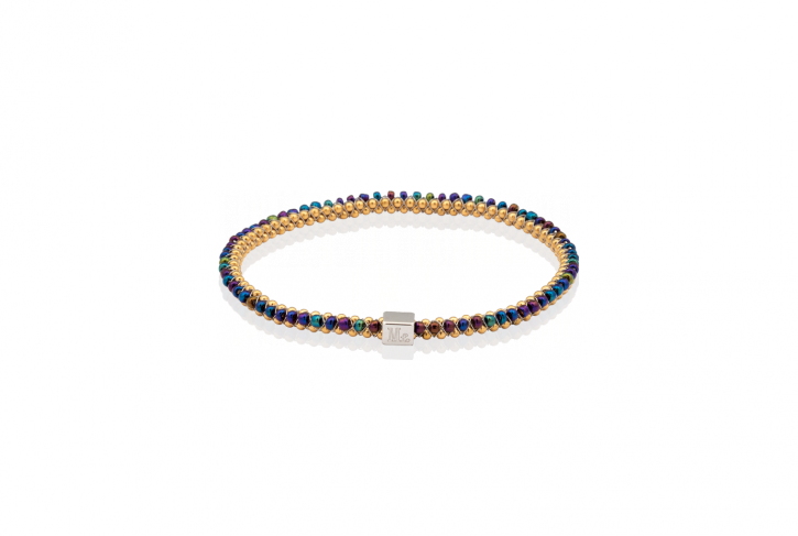 24K Gold PVD Plated Ball Chain with Black Iridescent Glass Beads