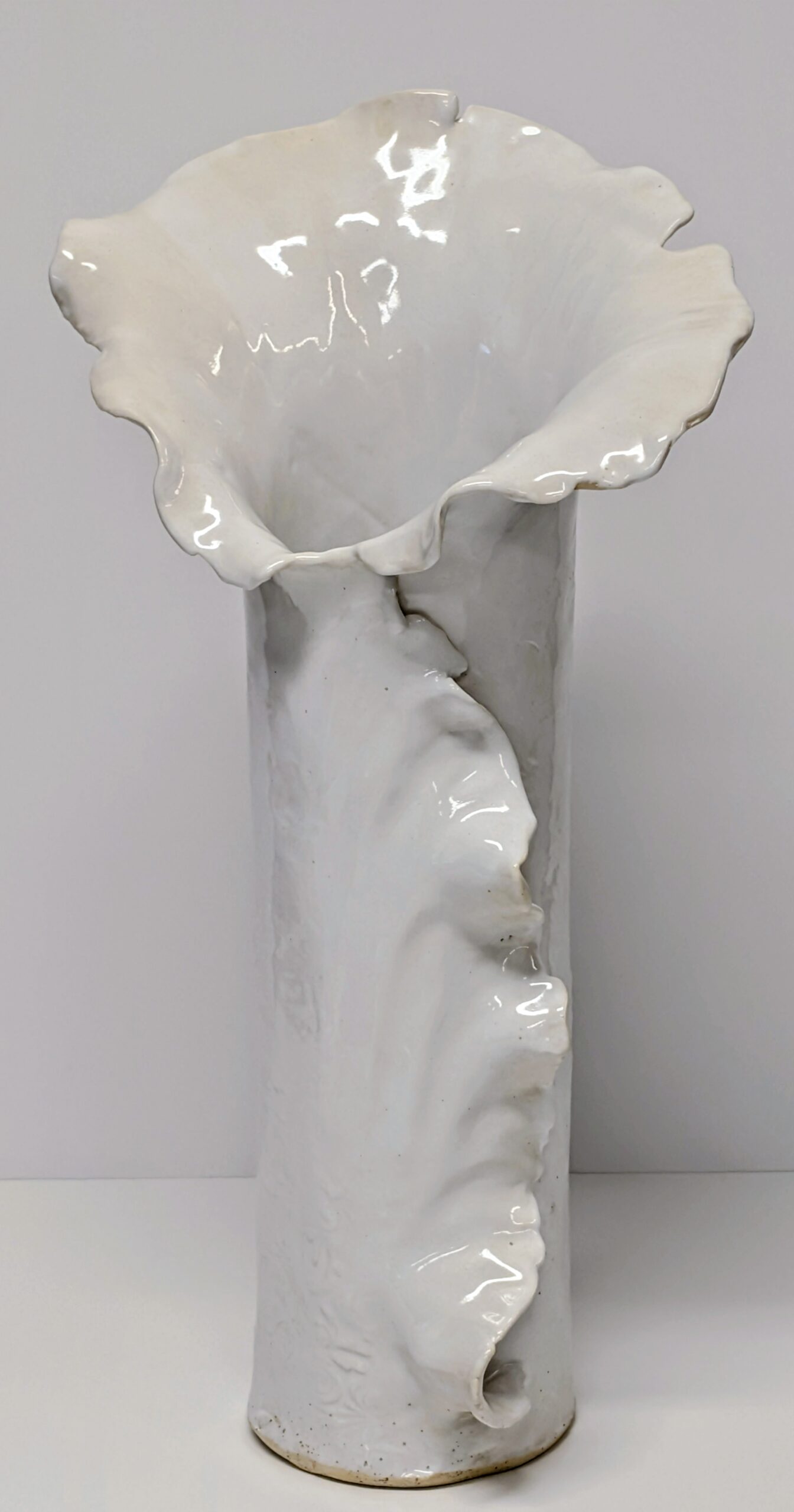 Large Hand Built Ruffled Vase