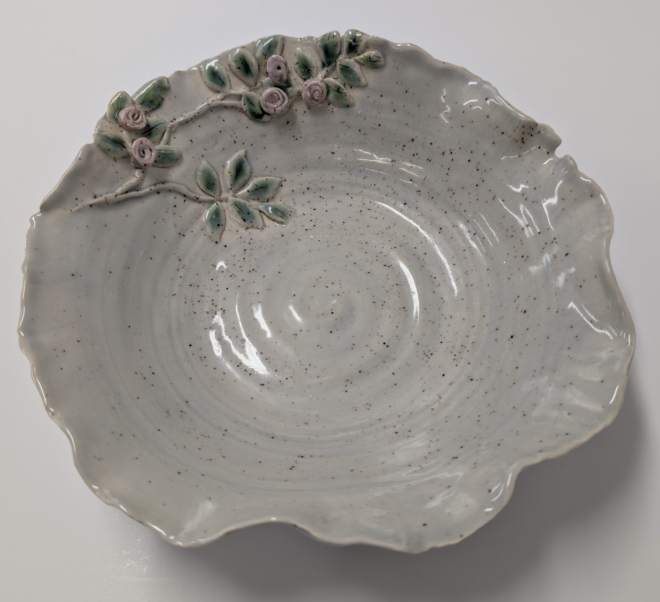 White Speckled Rose Bud Bowl